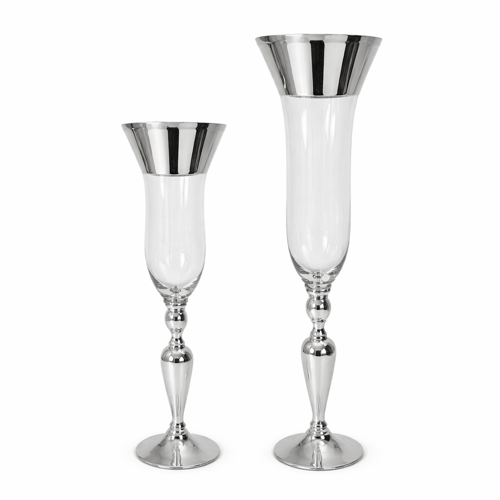 Anfora Cristal Copa Orilla Plateada 31″ Gde