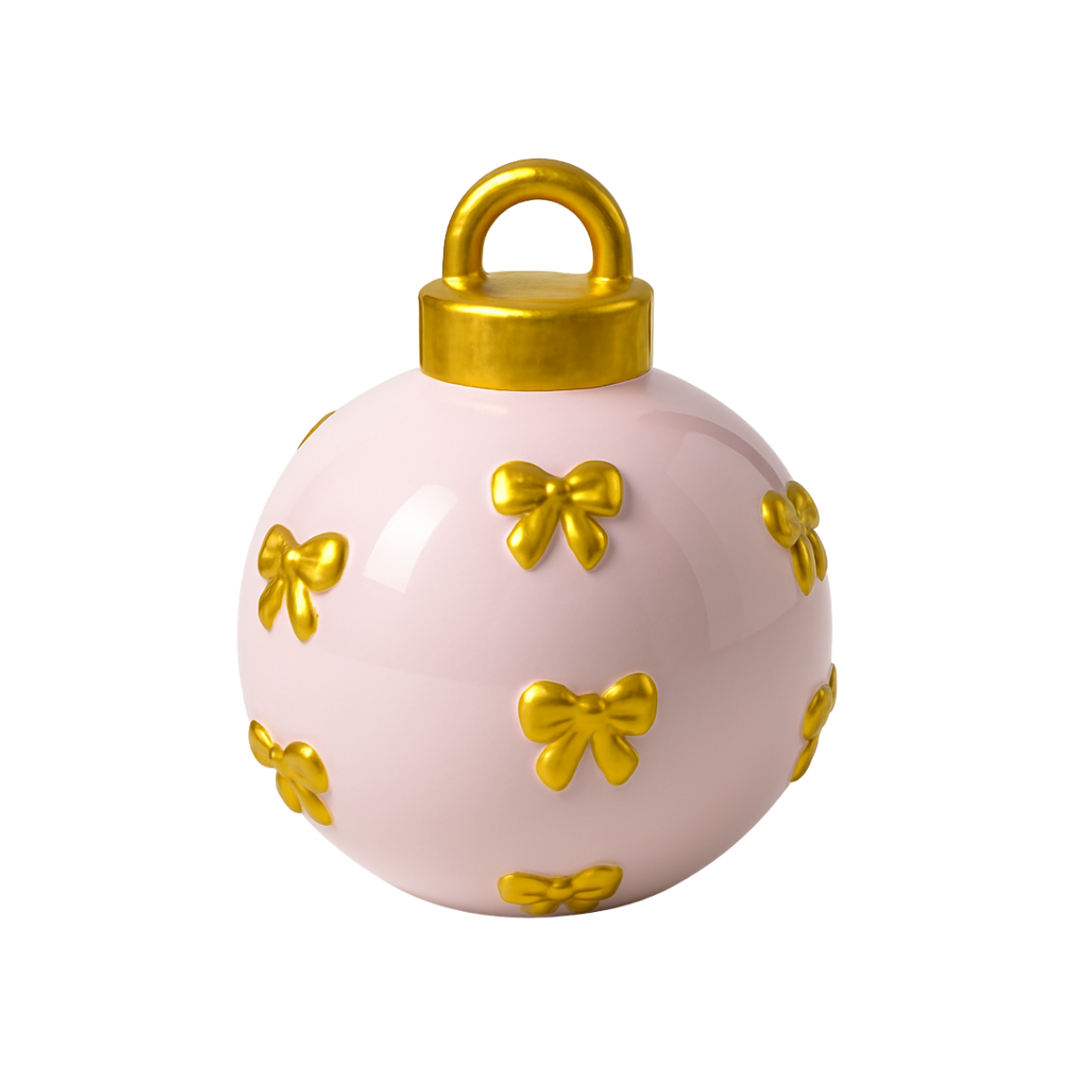 Bola Navideña Rosada con Lazos Dorados